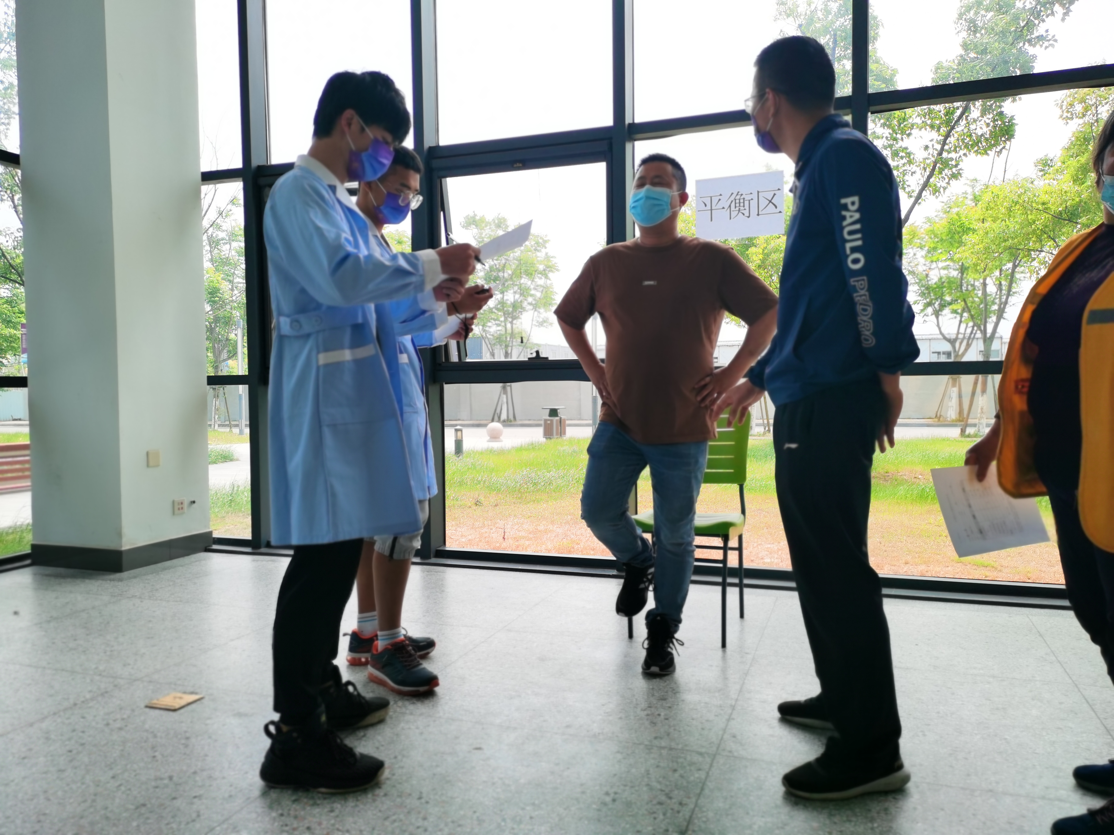 活动开始前,朱杰老师向参与测试人员详细讲解中老年人运动能力测量的意义及每项测试方法与评定标准。整个测试分为基本情况区、心肺耐力区、力量区、柔韧区及平衡区五部分,全面反应了人体各方面的运动能力。基本情况主要使用电子仪器测试身高、体重、血压及BMI指数;心肺耐力选取2min原地踏步为测试指标;力量方面分别测试了握力、仰卧起做及30S坐立起三项指标;柔韧素质方面选取了上肢的抓背与下肢的座椅体前屈;平衡能力方面分别进行了闭眼单脚站立与坐立行走测试两项指标。测试操作过程具有一定的主观性因素,因此如何规范的操作,得出客观的数据是同学们需要解决的难题为了解决这一问题,同学们多次实践,不断总结经验,进而确保了本次测试有条不紊的实施。测试后,许多被测试者都看到了自己的不足,并向同学们咨询。同学们运用所学的专业知识进行了一一解答,并为其今后的体力活动方案提出许多具体建议,得到测试者的高度认可。