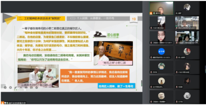 线上活动主要通过腾讯会议形式开展工匠精神宣讲。工匠精神包括高超的技艺和精湛的技能,严谨细致、专注负责的工作态度,精雕细琢、精益求精的工作理念,以及对职业的认同感、责任感。作为新时代的大学生,未来的职业人,十分必要学习和体会工匠精神的内涵和意义,树立争作大国工匠、能工巧匠的理想信念。