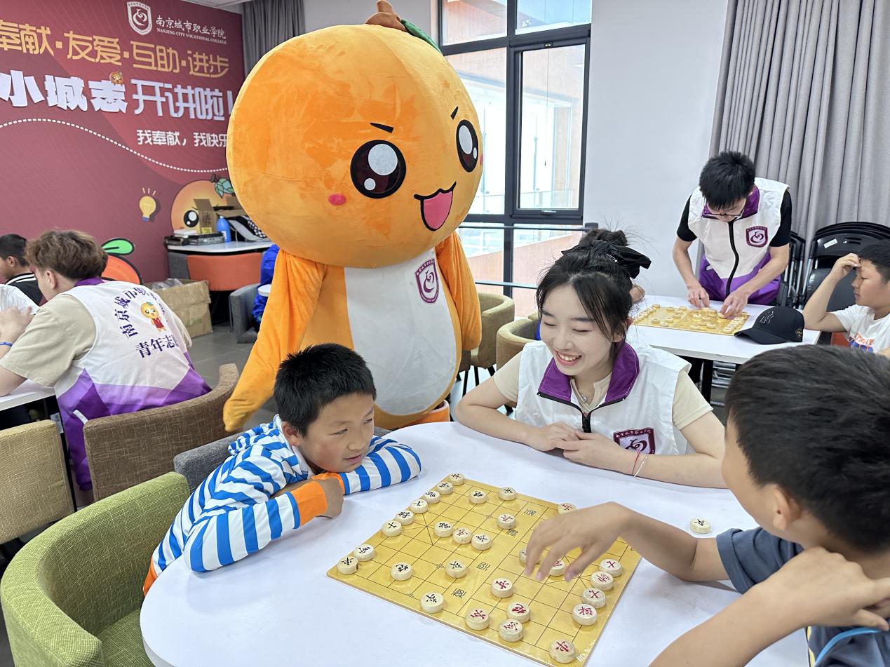 紧接着,小朋友们根据自己的喜好分别挑选了舞蹈学习和棋艺体验。舞蹈房内,伴随着《妈妈我爱你》的音乐响起,孩子们跟随“小城志”老师的指导认真学习着每一个动作。在棋房里,每个棋桌上都有一名“小城志”带着两个孩子,孩子们有的在认真学习,有的在苦苦思索,还有的已经开始对决,现场好不热闹。