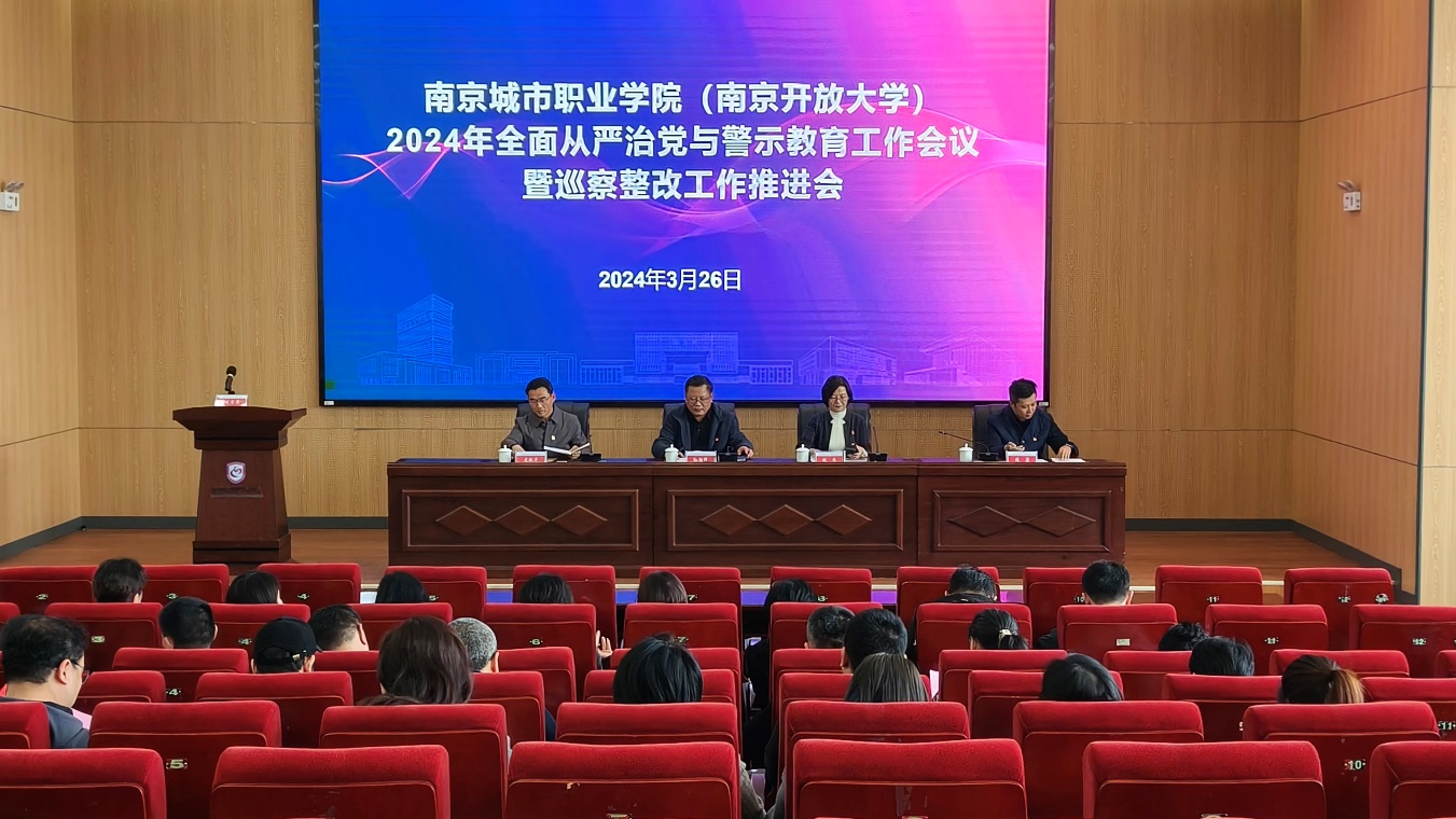 3月26日下午,我校在溧水校区行政楼一楼报告厅召开2024年全面从严治党与警示教育工作会议暨巡察整改工作推进会,深入学习贯彻习近平总书记在二十届中央纪委三次全会上的重要讲话和全会精神,深入学习贯彻习近平总书记关于党的自我革命的重要思想,贯彻落实2024年全省教育系统全面从严治党工作视频会议部署要求以及市委巡察整改要求,开展以案明纪警示教育,总结、部署学校全面从严治党工作。校党委书记孙朝晖出席会议并讲话,校党委副书记、校长倪杰主持会议,校纪委书记周康部署纪检工作。