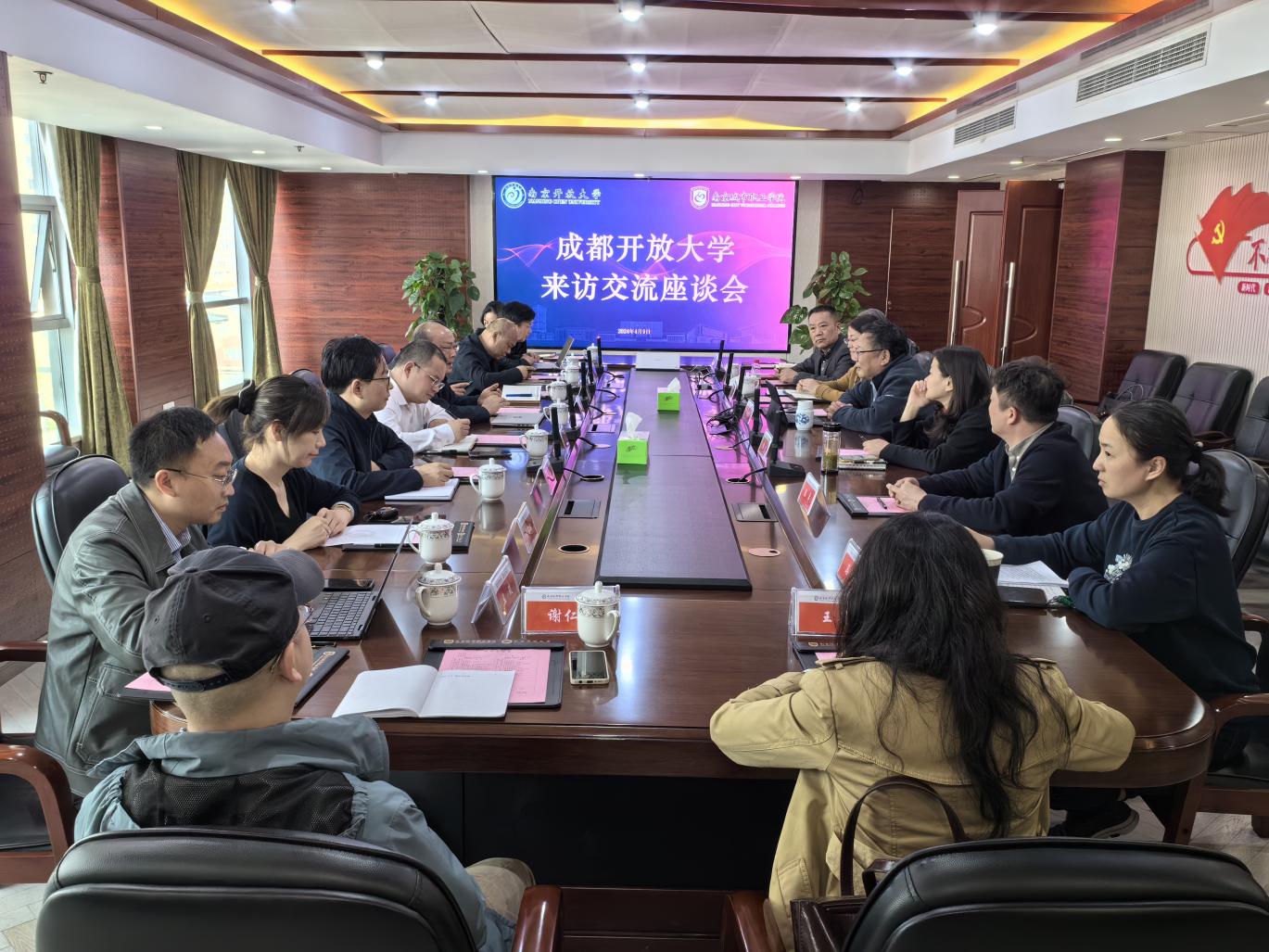 4月9日,成都开放大学党委书记冯炼及副校长曾垂刚、文亚军等一行11人到我校调研交流。校党委书记孙朝晖,党委委员、副校长张煌在新街口校区接待了冯书记一行,相关部门负责人参加交流与座谈。