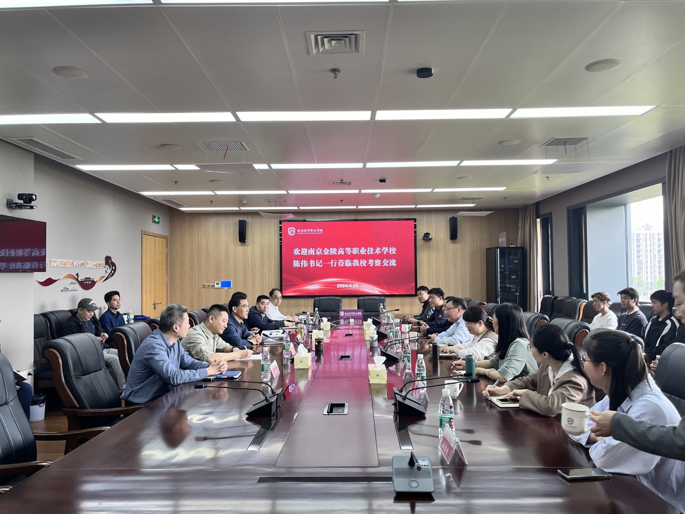 4月25日上午,南京金陵高等职业技术学校党委书记陈伟等一行20人到我校考察交流。学校党委副书记史献平在溧水校区办公楼会议室接待来宾,学生处、校团委及二级学院有关同志参加座谈交流。