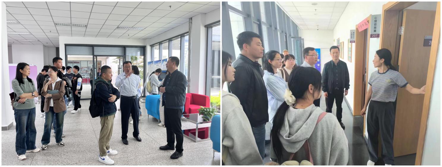 座谈交流结束后,学生处处长严翔等陪同陈伟书记一行参观了我校学生社区综合服务中心、大学生活动中心、心理健康服务中心、学生公寓等,并介绍了我校依托“一站式”学生社区建设进一步推进“三全育人”工作的有关情况。