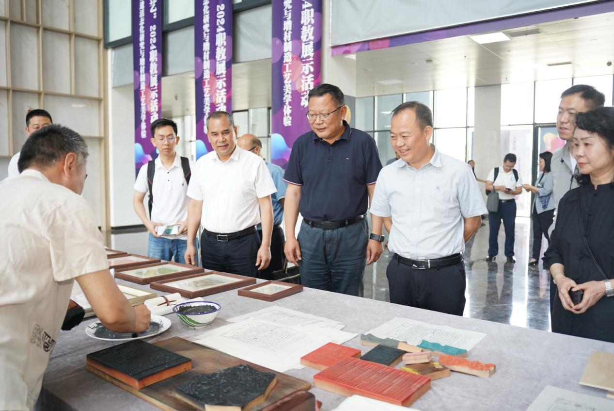 5月17日上午,我校数字文创学院举办“人机共创•中国技艺”非遗活态化研究与增材制造工艺美学体验活动。此次活动以“一技在手,一生无忧”为主题,是学校2024年职业教育活动周重要内容,充分展示我校职业教育发展成果。校党委书记孙朝晖,校党委委员、副校长江景亲临指导,校教务处、数字文创学院的相关负责同志以及二百余名师生代表参加活动。