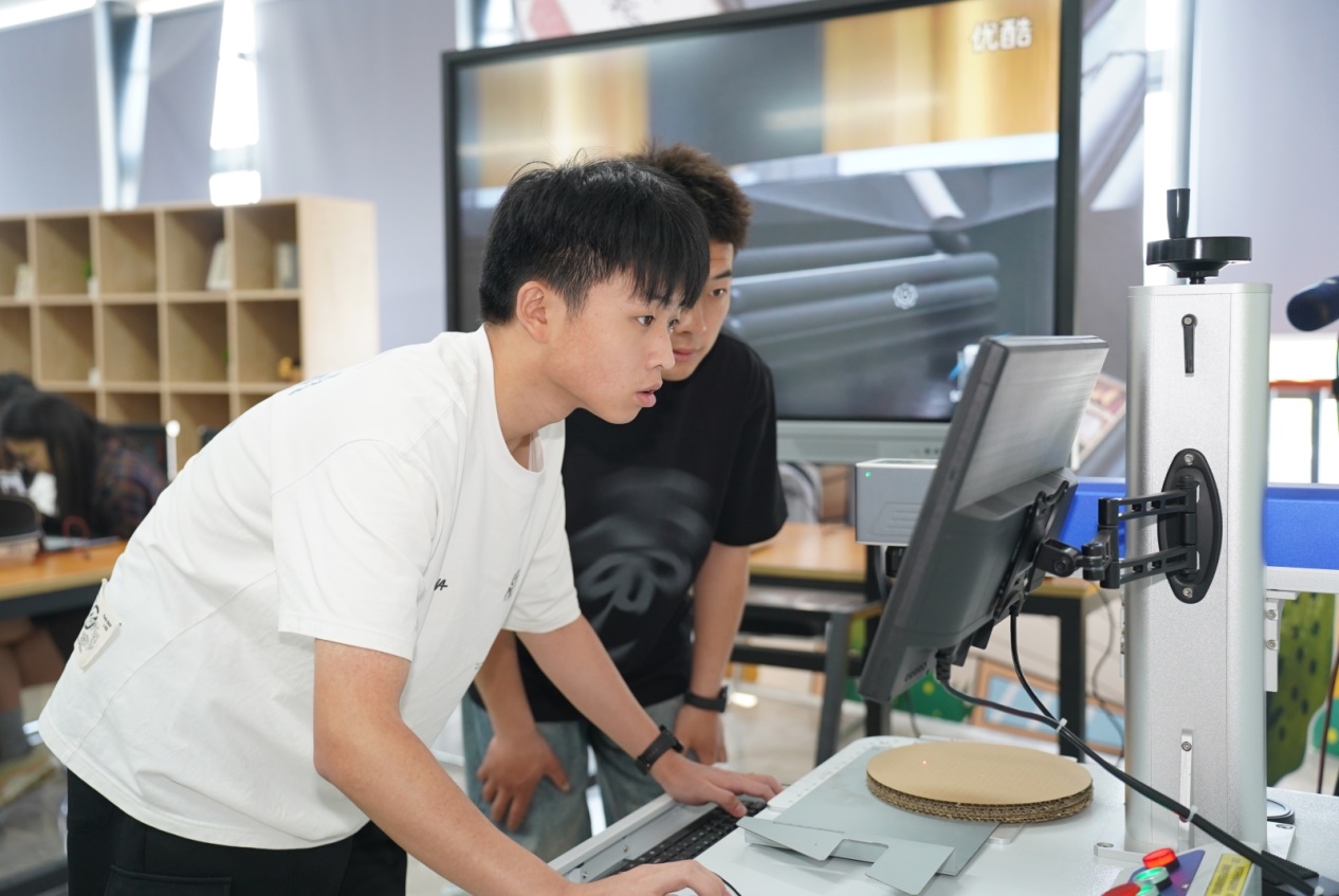 与此同时,在学校科创楼增材制造实训室进行的3D打印、激光雕刻实验教学中,师生们利用先进的3D打印技术,结合雕版印刷元素,发挥创意和想象力,数智再造富有传统文化韵味的作品。该教学体验以产品设计成果转化为核心,以数字化技术应用为手段,以设计人才培养与推广为目标。项目实训室正持续打造为先进设计理念传播地、先进技术发明应用地、优秀产品设计人才聚居地和优秀设计作品展示地。通过数智化产品设计,能够将设计者的创意和想法快速实现,新兴技术与传统文化的结合让大家看到了无限可能。增材制造技术的应用不仅拓宽了职业教学领域,也为学生们提供了一个全新的创作平台,在实践中学习成长。