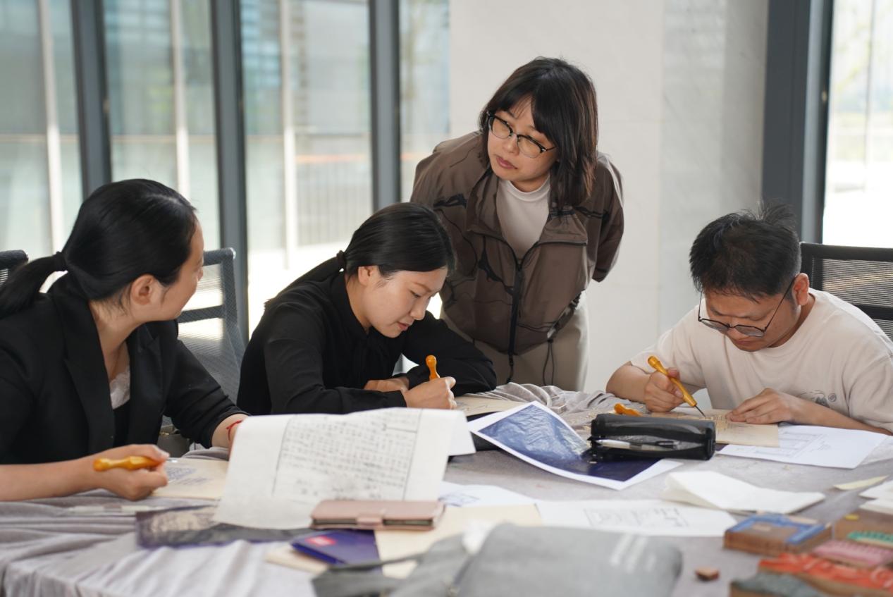 近年来,我校数字文创学院以文化引领,在推动非遗创造性转化、创新性发展的背景下,充分发挥非物质文化遗产与现代设计理念的结合优势。师生共同设计《大运河》《刻·印南城》等主题雕版,开发《金陵四方集》雕版主题文创产品。其中,《刻·印南城》以校园文化为主题,与非遗大师共同指导社团成员完成。指导教师与学生组建研究小组共同探讨设计方案,引导学生将非遗技艺融入雕版设计,运用藏书票和雕版印刷技艺聚焦传统文化,并创新发展新方向新形式。学校以美育浸润学生,全面提升学生文化理解、审美感知、艺术表现、创意实践等核心素养。技能大师工作室积极参加紫金奖·第四届中国(南京)大学生设计展、中小学生开放日等社会活动,现场展示传统雕刻、印刷技艺,并指导参观者体验印刷过程,激发大众对非遗的热情。系列活动有效传承、推广了雕版印刷技术,进一步拉近了雕版印刷技艺与人本的关系,让更多社会公众意识到传承的重要性和责任感。