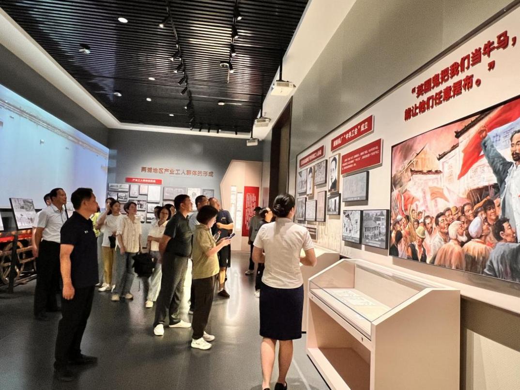 党课结束后,大家又来到江北新区红色广场,依次观看了“两浦星火,革命洪流”“疾风劲草,北岸屹立”“救亡烽火,坚持抗战”等七个部分的展览。通过听取讲解、观摩实物、观看图片视频,党员们追忆南京早期党组织的光辉历史,重温波澜壮阔的斗争岁月,深刻领悟王荷波等老一辈革命者的坚定信仰和崇高革命精神。