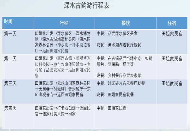 比赛前期,学生们通过实地考察、市场调研和团队协作,设计出了各具特色的旅游线路,内容涵盖了溧水区的自然风光、人文景观和民俗风情。比赛过程中,学生们详细阐述了设计思路、目标受众和预期效果,展示了他们扎实的专业知识和敏锐的市场洞察力。其中,一组学生设计的“溧水古韵游”线路备受好评。该线路以溧水区的历史文化为主题,串联起了多个古迹名胜和民俗体验项目,让游客在游览中感受溧水的历史底蕴和文化魅力。另一组学生则针对年轻大学生群体,设计了一条以户外运动为主题的“溧水运动休闲行”线路,旨在让游客感受溧水的自然美景和户外运动的乐趣。评委张荣娟老师从方案的独特性、创新性、体验性、时代性、实用性五个方面进行了评判,经过激烈的角逐,参赛小组一决高下,最终决出了一、二、三等奖,整个技能比赛紧张有序,亮点频现,成效显著。活动结束后,同学们纷纷表示,通过参与这次活动,他们不仅加深了对民宿管理与运营专业的理解,还锻炼了自己的团队协作能力和创新思维。同时,他们也更加明确了自己的职业规划和未来发展方向。