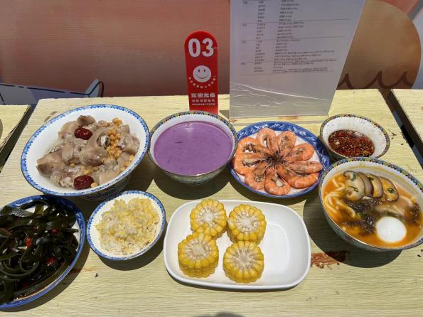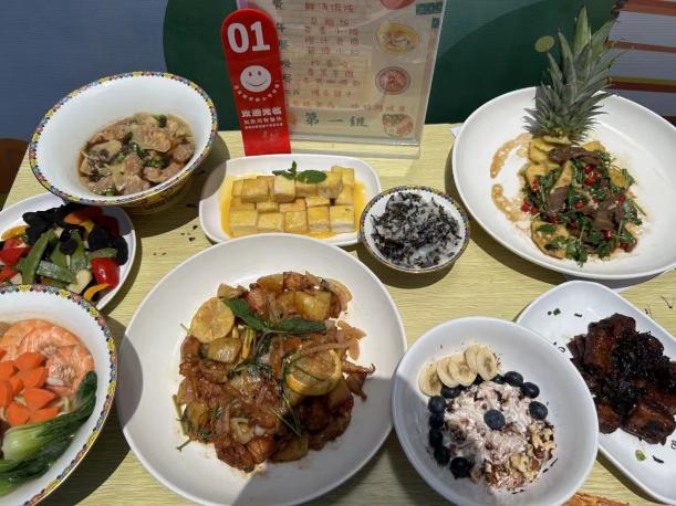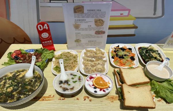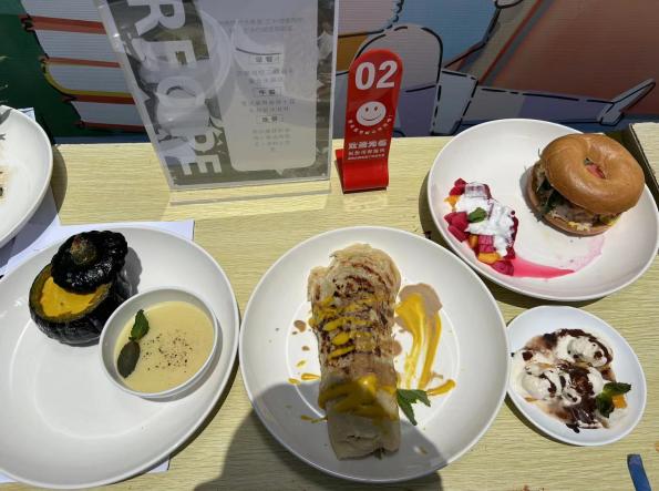 经过长达两个半小时的时间,八组同学均在规定的时间内完成一日菜品的制作,按组别匿名将成品展示,并向评委老师介绍其营养餐设计理念、营养特点和菜品特色。营养配餐专业负责人王建华老师从食谱的设计、食材的选择、热量的供给、三餐的配比、菜品的色香味形等方面进行了点评。经过由专业老师和大学生代表共同组成的评审小组评审打分,康养工程学院22级营养配餐1班的陈韵玮、邢金镇、张鑫鑫同学设计的“豆香轻食尚,鲜奶润健康”系列营养菜品获得一等奖。