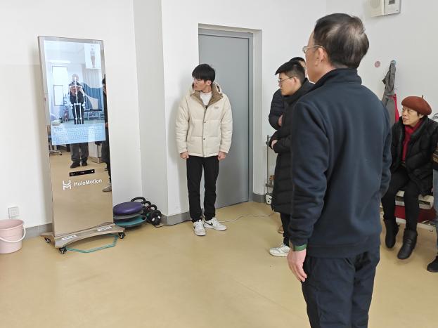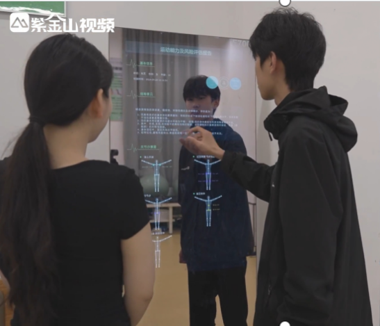 活动现场最引人注目的是一台高科技设备“体适能与运动损伤风险评估一体机”,这台形似镜子的神奇设备,通过先进的人工智能技术,能够精准捕捉使用者在镜前的姿态与动作,即时分析并生成个性化的“运动处方”。