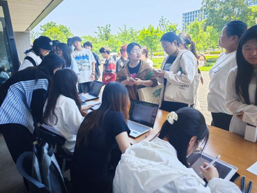 此次活动紧扣“一技在手,一生无忧”的职教周主题,聚焦艺术设计专业学生专业技能,助力求职就业。活动现场,艺术设计专业教师周静和顾潇进行现场的指导,艺术设计专业学生进行现场实操,为前来咨询制作的同学,从简历的内容,版式,整体视觉等几个方面,进行简历的设计制作。此外,仍有艺术设计专业的同学为现场的同学进行数字头像的设计制作。活动现场前来咨询的学生络绎不绝,热闹非凡。