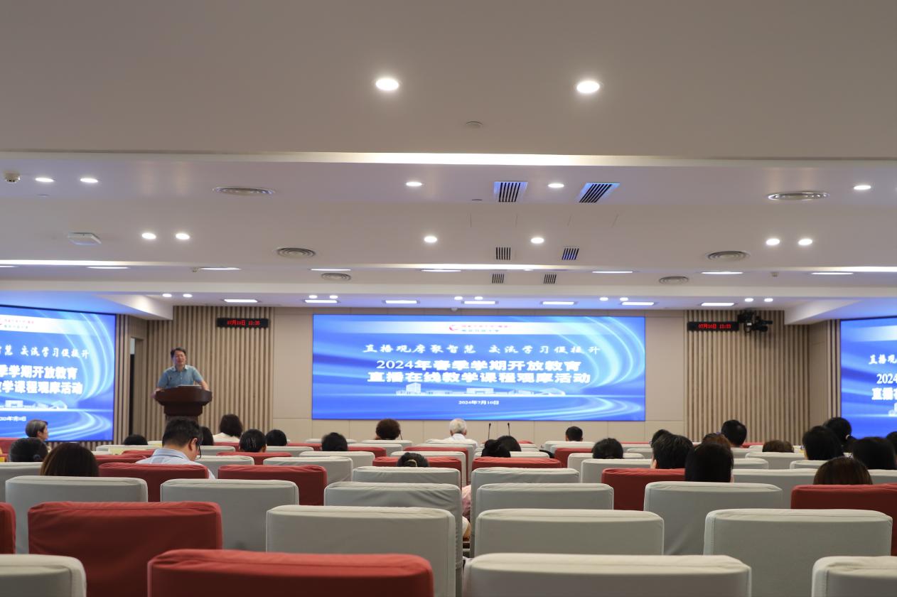 为进一步明确开放教育直播在线教学定位,优化直播在线教学设计,提高学生参与度,有效促进教学运行环节充分落实,我校于7月10日下午在新街口校区多功能厅开展开放教育直播在线教学课程观摩活动。本次观摩活动由继续教育中心主任狄勇主持,副校长陈正宇出席并讲话。教学督导专家、校内外专业责任教师、课程责任教师和学习中心辅导教师代表、教学管理人员参加了观摩活动。