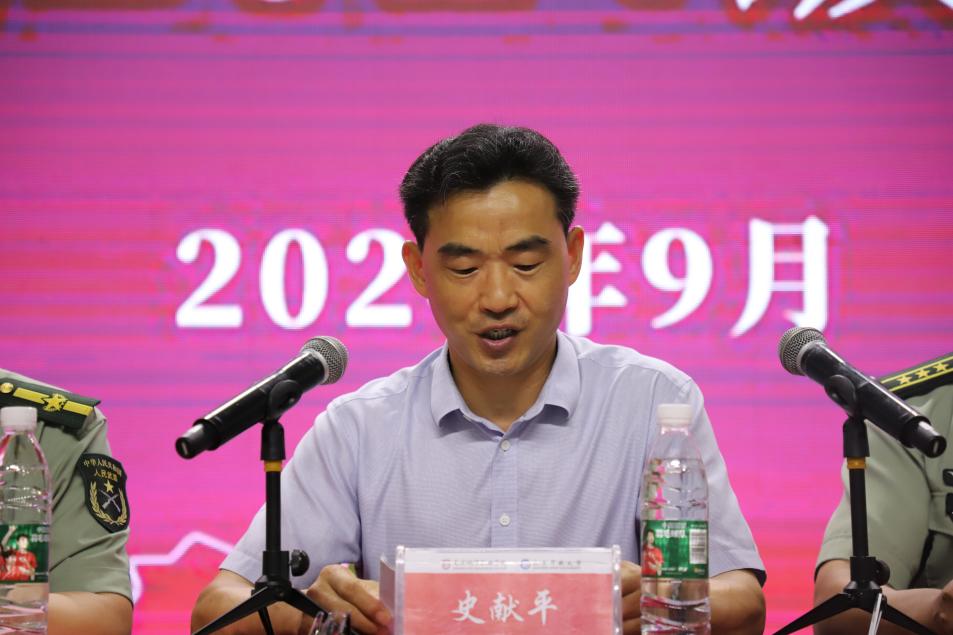金风送爽,丹桂飘香!在这个充满希望与活力的季节里,我校迎来了2024级新生军训开营仪式。校党委副书记史献平、承训部队领导、各二级学院分管学生工作负责人、全体2024级辅导员及校人武部全体同志参加开营仪式。仪式由校人武部部长严翔主持。
