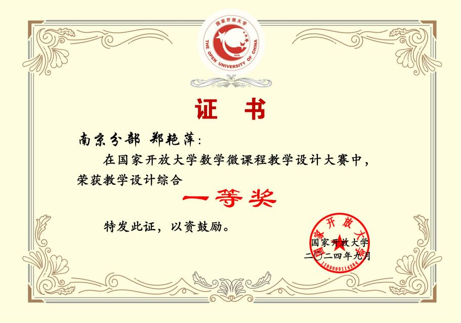 日前,国家开放大学公布了数学微课程教学设计大赛获奖名单。我校报送的两项作品均斩获佳绩,数字财商学院教师郑艳萍作品《极限的运算》荣获教学设计综合一等奖,智能工程学院教师宋彩虹作品《旋转体体积的计算》荣获教学设计综合三等奖。