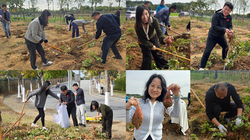 本次收获的劳动硕果是党支部于今年5月在学校西南角种下的红薯。活动开始前,党支部已经事先准备好了各种劳动工具,包括锄头、袋子、推车。活动开始后,党员们分工合作,迅速投入到收获红薯的劳动中有的负责挖土,有的负责捡拾红薯,有的则负责将红薯装袋。在大家的共同努力下,不一会儿,一个个红彤彤、圆滚滚的红薯便装满了小推车。党员们纷纷感慨道:“这些红薯真大,长得真好!”