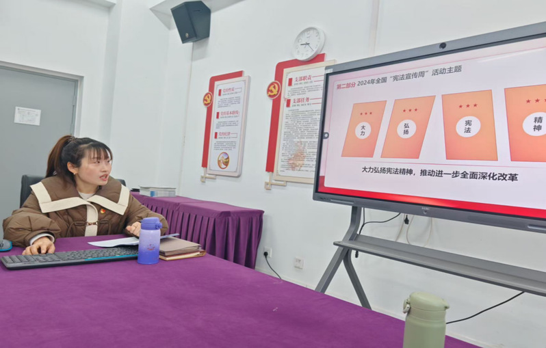 2024124日是我国第十一个“国家宪法日”,为深入学习宣传贯彻习近平法治思想,彰显宪法权威,弘扬宪法精神,进一步增强全体党员的法治意识。随后,李欢欢同志围绕宪法的概念及其发展历程、宪法权威的来源、宪法的实施进行了详细阐述。她强调,宪法作为国家的根本大法,在国家治理、社会秩序维护和公民权益保障中占据着不可动摇的核心地位。她要求全体党员以此次活动为契机,积极发挥先锋模范作用,不仅自身要深入学习宪法、严格遵守宪法,还要带动身边的人共同参与到宪法的学习和实践中来,为全面依法治国贡献智慧和力量。