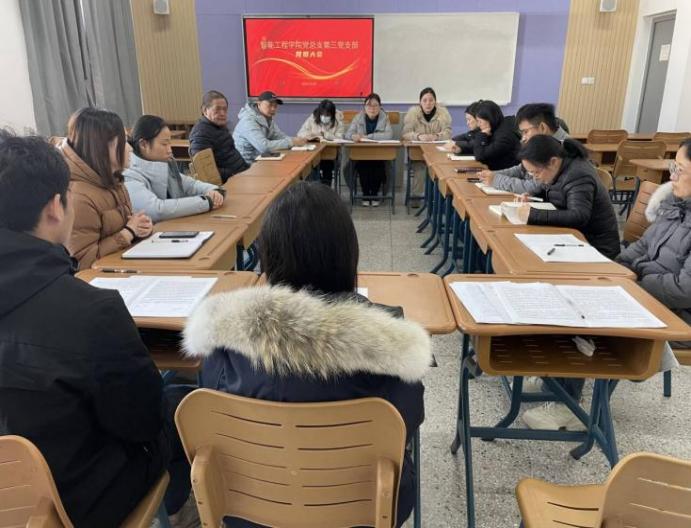 为落实支部发展工作计划,智能工程学院党总支第三党支部于1224日下午12:30在勤学楼318室召开支部党员大会,本次大会有理论学习、讨论接收预备党员、党课学习三项议程,支部全体党员教师参加。会议由支部书记戴志娟同志主持。