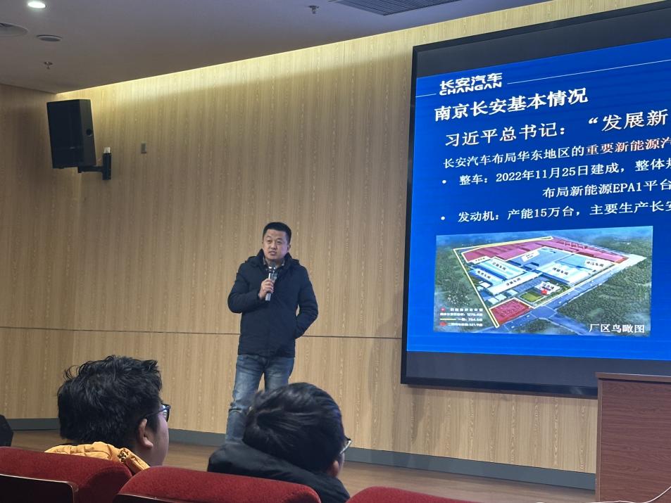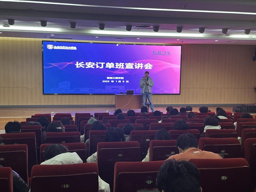 1月8日,智能工程学院汽车教研室在图书馆报告厅成功举办了现代学徒制长安订单班宣讲会。南京长安汽车有限公司(以下简称“南京长安”)校企合作部主管隋忠堂、智能工程学院院长力志、汽车教研室主任及专业负责人和200余名2023级学生参加了此次会议。