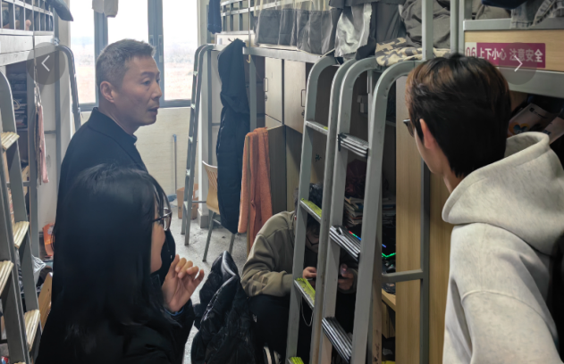 学生返校后的首周,学院迅速行动起来。智能工程学院党总支副书记、副院长蔡天泽率先垂范,带领辅导员、班主任老师们深入学生宿舍一线。老师们带着如春日暖阳般的热情,轻轻叩开每一间寝室的门,瞬间驱散了同学们初返校园的陌生感。他们与同学们并肩而坐,亲切交谈,从假期中的温馨趣事、个人成长感悟,到返校后的作息适应、学业新规划,无一遗漏地细细询问。每一句关怀、每一个建议,都化作实实在在的助力,推动着同学们更快、更稳地融入校园生活的快节奏