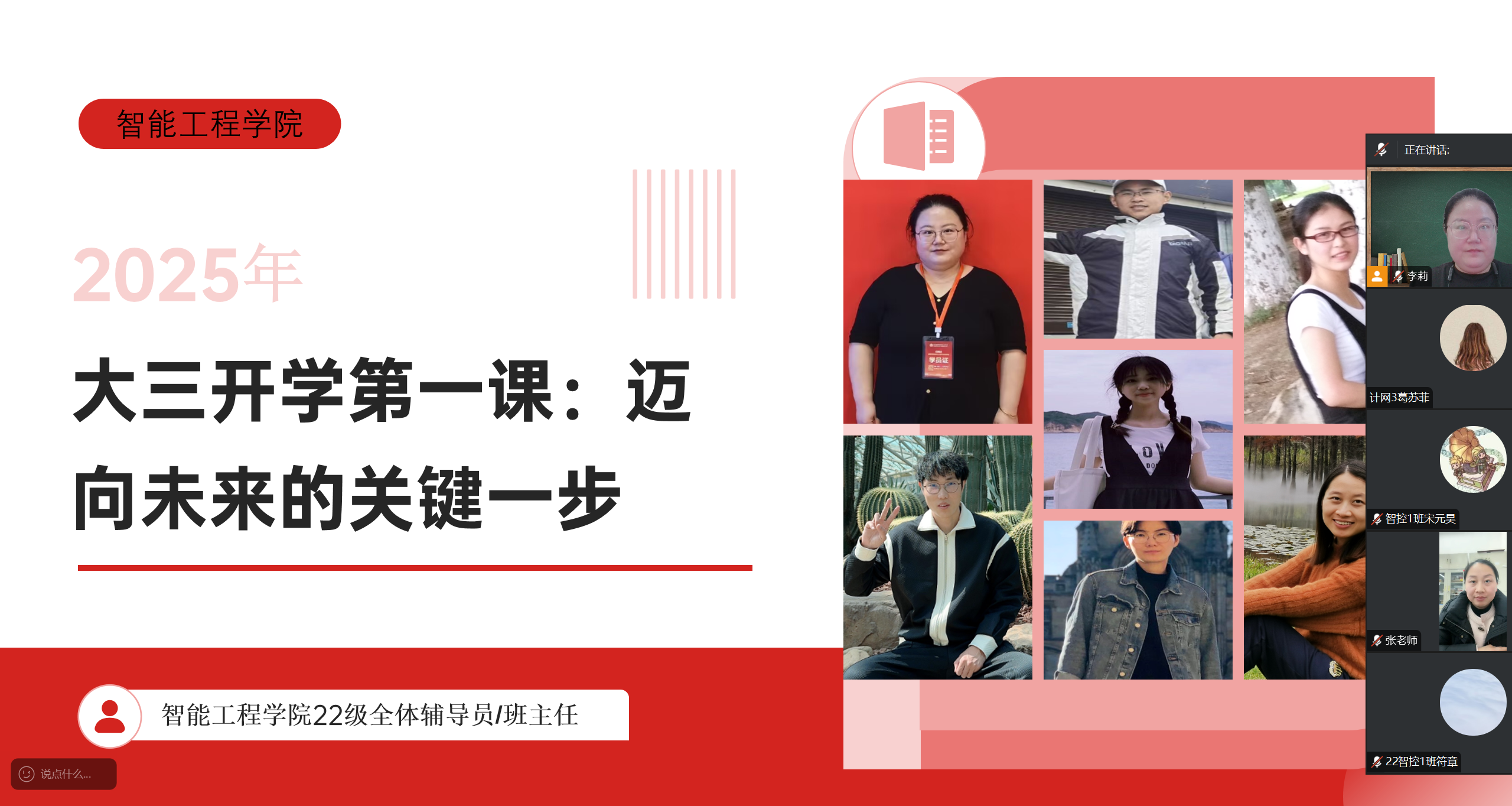 2025220日中午,智能工程学院大三全体辅导员、班主任精心组织了一场线上开学第一课主题班会。此次班会聚焦实习安全、就业动员、身心健康、毕业论文答辩准备以及挂科重修等,全方位助力学生顺利度过实习阶段,为职业生涯做好充分准备。