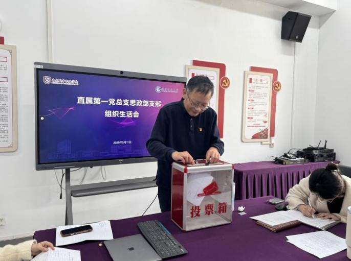 为深入学习贯彻习近平新时代中国特色社会主义思想,巩固深化党纪学习教育成果,强化党支部政治功能和组织功能,提升党员的凝聚力和战斗力,3月11日,直属第一党总支思政部支部召开2024年度组织生活会暨民主评议党员会议。会议由思政部党支部副书记刘晨主持,思政部党支部全体党员参加会议,学校党委书记孙朝晖以普通党员身份参加。