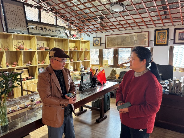 为深入贯彻落实党的二十大精神,传承中华优秀传统文化,加强非物质文化遗产保护传承,推动非遗与现代生活深度融合,也为进一步推动校企合作,提升课程实训教学质量,数字财商学院网络营销与直播电商专业于3月11日赴南京市溧水区无想水镇袁六顺非遗研创中心开展了实地走访。此次活动由数字财商学院网络营销与直播电商专业负责人朱明远老师、辅导员兼分团委助理周念琪老师及两
