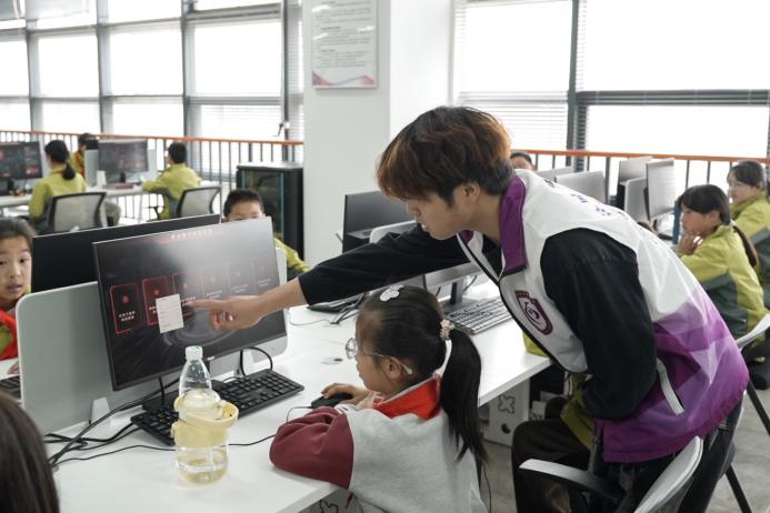 第三篇章“数字边疆·卫盾”将课堂延伸至科创楼江苏省中小学生职业体验中心。“网络安全 E路成长”青少年网络安全宣传志愿服务队的同学们带领小学生亲身体验钓鱼软件识别、密码破解等场景,在虚拟实战中理解“没有网络安全就没有国家安全”的深刻内涵。跨学段联动机制让不同年龄段的学生在协作中深化认知,构建起国家安全教育的立体网络。活动现场,和凤小学学生孙一歆同学兴奋地说:“原来保护网络安全要像保护城堡一样认真!”
