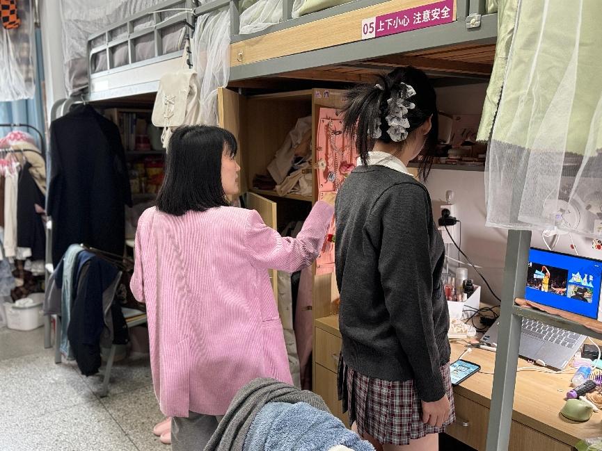 429日至30日,全体辅导员深入学生宿舍,开展“面对面”安全巡查与交流。走访过程中,老师们重点检查了宿舍用电安全、违规电器使用情况,对私拉电线、充电器未及时拔除等隐患问题现场整改。同时,结合近期天气变化,提醒学生注意宿舍通风和卫生清洁,预防流行疾病。“假期离校前一定要关闭电源、锁好门窗,途中注意交通安全,有任何突发情况及时和老师联系。”辅导员们逐间宿舍叮嘱,将关怀落到实处。不少同学表示,老师的细心提醒让大家感受到了温暖,也更加重视自身安全。
