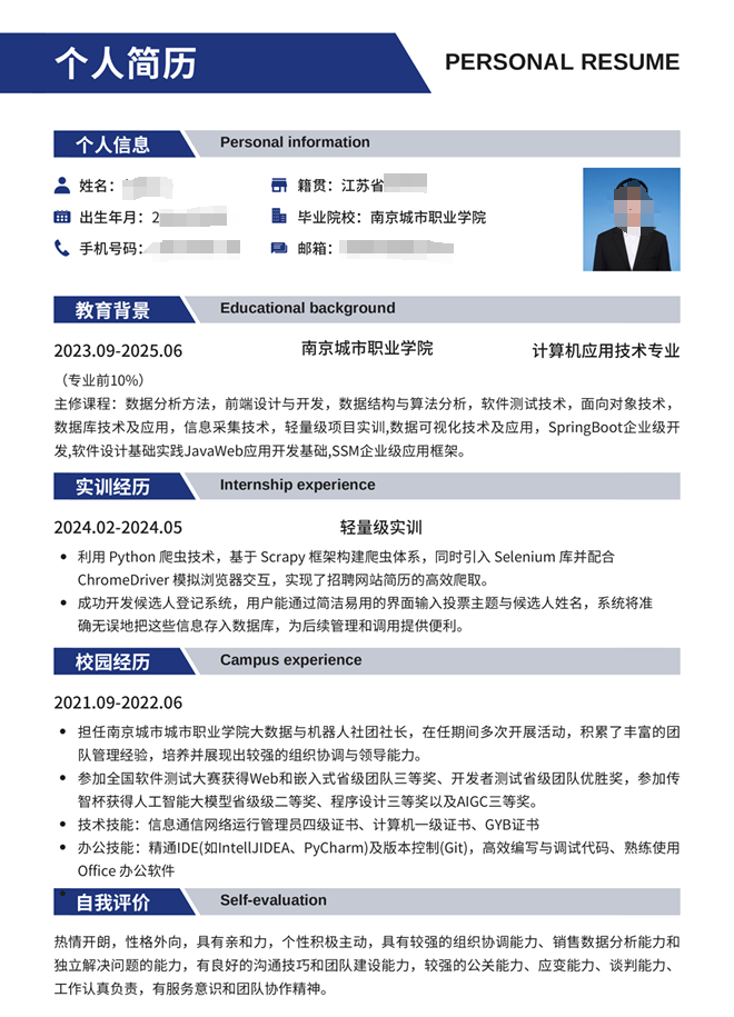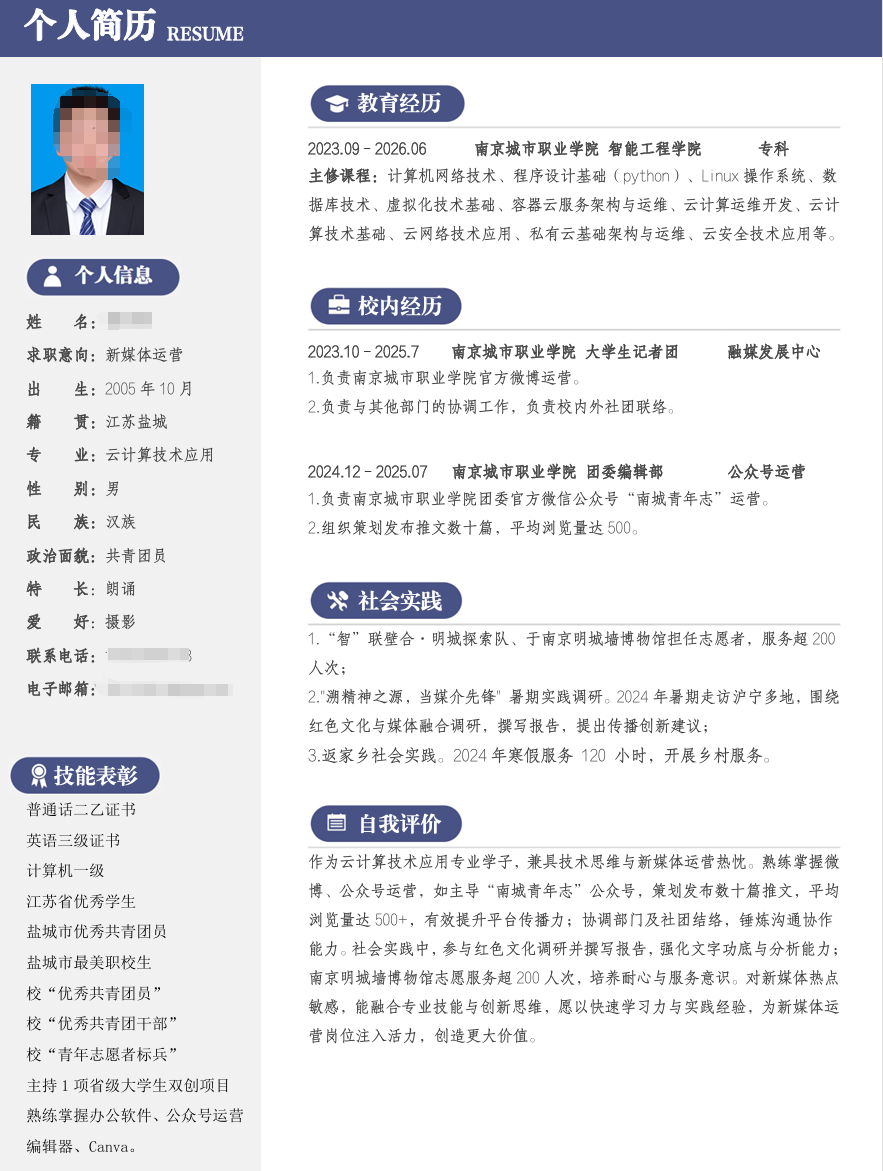 经过学院评审老师们严格、公正的评选,最终从众多参赛作品中脱颖而出25份优秀简历,成功晋级学校的简历设计制作决赛。这些入围作品不仅在外观设计上简洁美观、富有创意,展现出当代大学生的青春活力与审美追求,更在内容上详实丰富、逻辑清晰,充分体现了参赛者扎实的专业基础、丰富的实践经验和明确的职业目标,全方位展示了我院学生的综合素养与求职实力。
