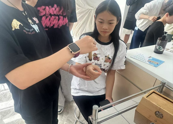 为了缓解师生工作学习压力,普及中医“治未病”理念,活动现场,社团指导老师王晓丽带领学生亲手制作艾条,展示拔罐操作,为体验者提供个性化服务,针对肩颈疲劳、腰背酸痛等常见问题,通过拔罐、艾灸等非药物疗法进行调理,体验者反馈“身体轻松许多,关节肌肉紧张状态明显改善”。