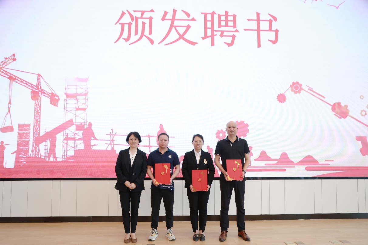 为推动劳模工匠与职业教育的深度合作,学校特别设立“劳模工匠校外导师”机制。在颁发聘书环节,朱小蔚为全国劳模张恒楠、南京市劳模刘锡云与徐振乾逐一颁发聘书。