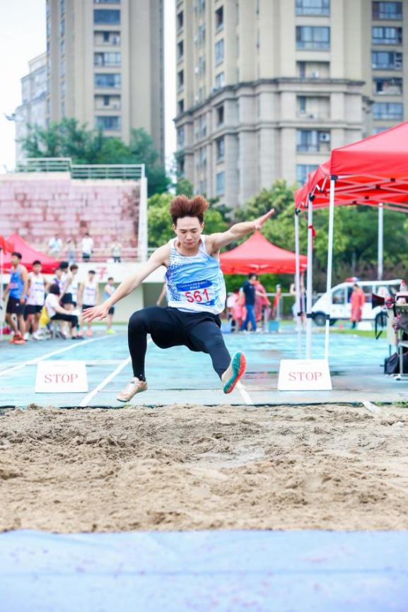 康养工程学院褚俊宇同学成为本届市运会的“双冠王”,在男子乙组三级跳远和男子跳远项目中均以绝对优势摘得金牌,展现了绝对的爆发力和技术稳定性。他的起跳瞬间如同猛虎出笼,每一次落地都稳如磐石,观众席上爆发出阵阵掌声和欢呼声。