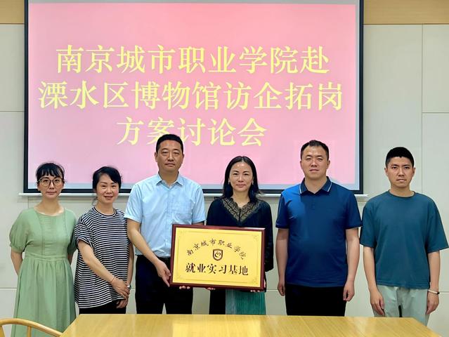 座谈会上,双方就数字文创人才核心技能需求以及学生进馆志愿服务安排等展开讨论。随后,陈乃鸿代表学院向溧水区博物馆授予“就业实习基地”牌匾。