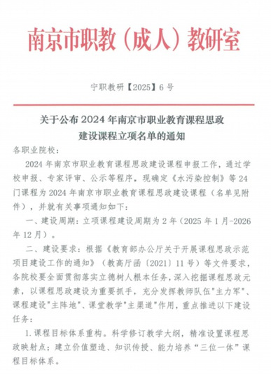 喜报-我校两门课程入选南京市职业教育课程思政建设课程