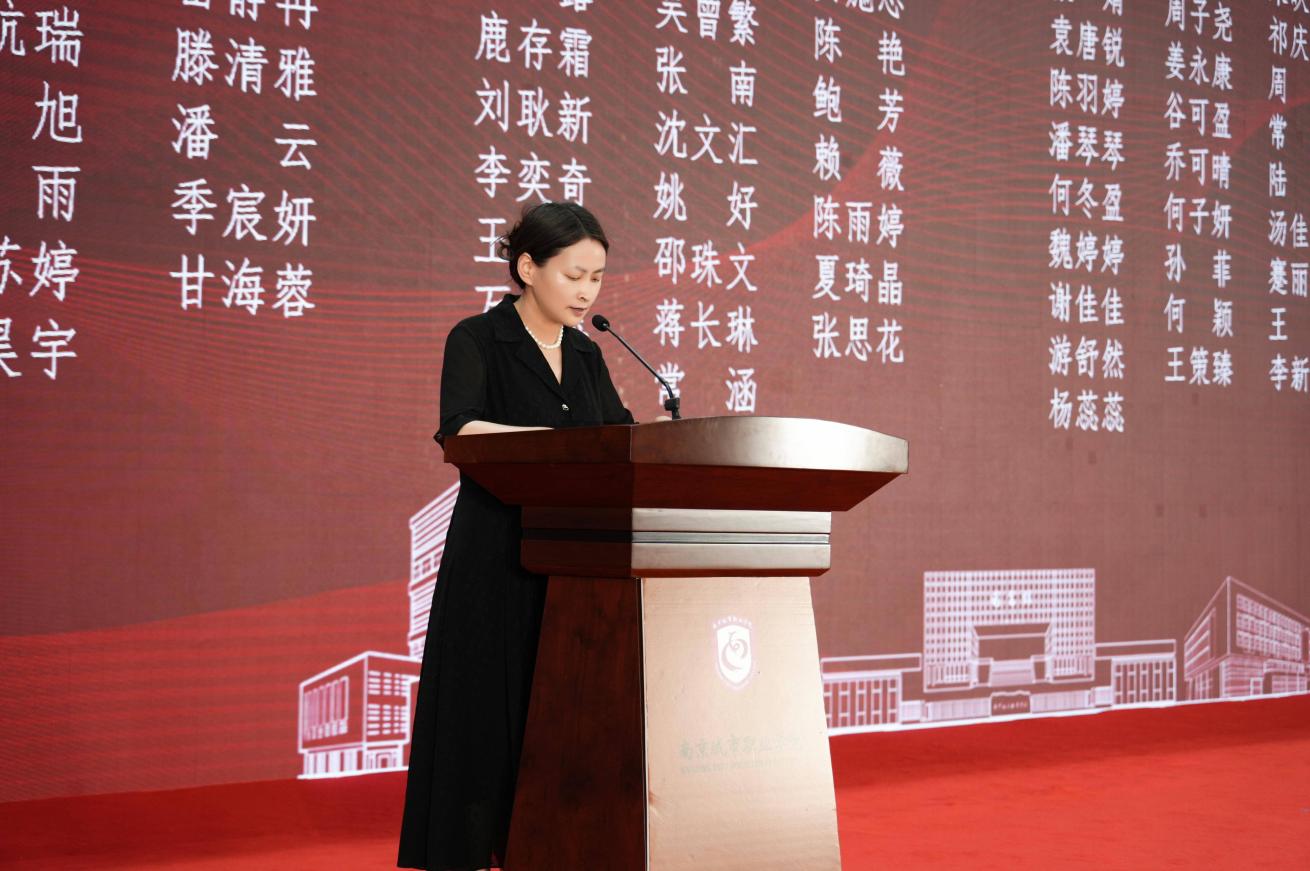 本年度毕业典礼首设校友发言环节。南京正赞软件科技有限公司总经理、2011届优秀校友李秀荣以《饮水思源念母校,薪火相传启新程》为题,寄语学弟学妹“保持终身学习、重视团队协作”,并代表全体校友祝愿母校“桃李满园,育才万千”。