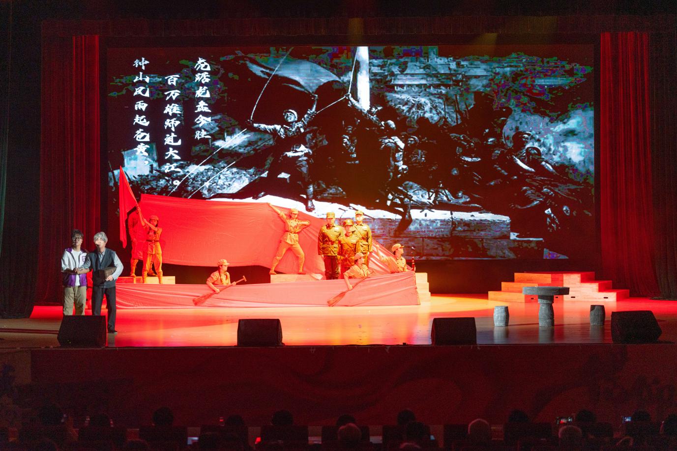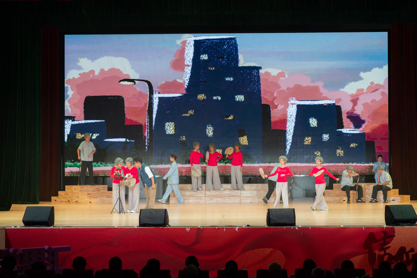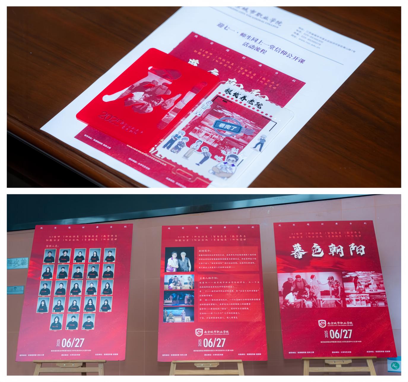 随着灯光渐暗,由校师生倾情打造的原创话剧《暮色朝阳》拉开活动序幕。这部入围2025年江苏省大戏展终评展演的作品,灵感源于真实生活,巧妙融合了校地下党员老校长、优秀校友等育人故事。以青年学生陈暮阳投身养老服务实践并实现精神蜕变为主线,聚焦红色基因传承、生命尊严关怀、代际冲突和解与职教价值展现,生动展现了职业教育在服务社会民生、应对人口老龄化国家战略中所迸发的独特价值与温暖力量。舞台上,演员们用真挚的表演,将一个个鲜活的角色呈现在观众眼前,带领大家穿越时空,感受信仰的力量。