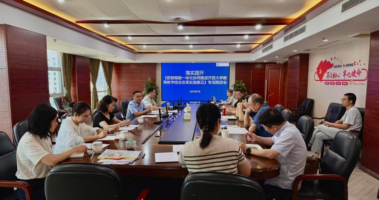 为推进落实国家开放大学《数智赋能一体化协同推进开放大学教育教学综合改革实施意见》,促进开放教育高质量发展,72日上午,我校在新街口校区召开专项推进会。教务处、装备与信息化建设处、二级学院等相关职能部门负责人参会,副校长陈正宇主持会议。