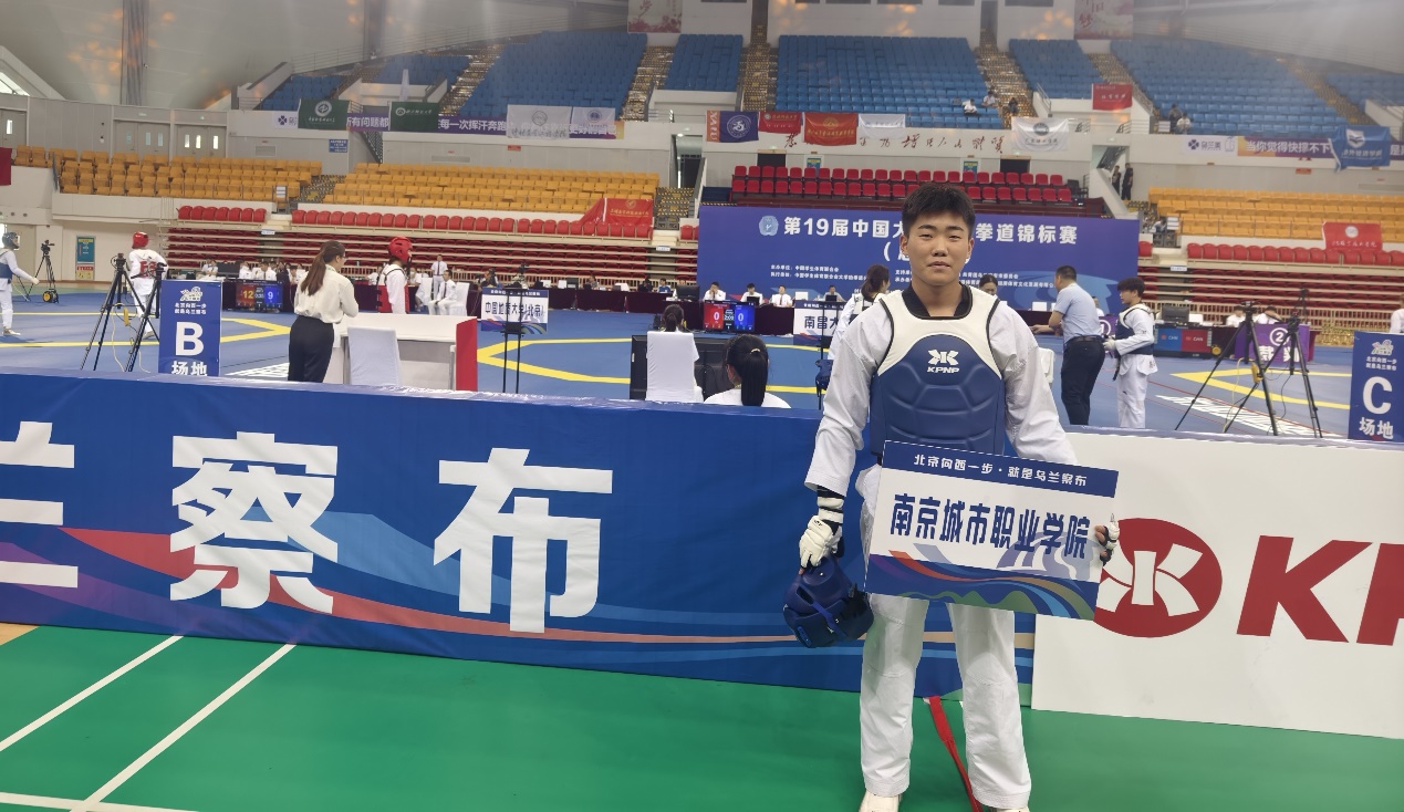 7月6日至11日,第19届中国大学生跆拳道锦标赛(总决赛)在内蒙古乌兰察布市举行。我校由公共教学部徐京朝老师担任领队、吴宾老师担任教练,参赛运动员康养工程学院孙睿康同学在比赛中表现出色,斩获乙组男子-74kg级铜牌。