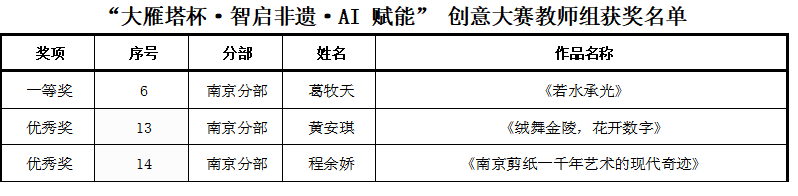 在西安开放大学与哈尔滨开放大学联合主办的“大雁塔杯·智启非遗·AI赋能”创意大赛中,我校师生凭借出色的创新能力和对传统文化的深刻理解,在激烈竞争中脱颖而出,共斩获教师组一等奖1项、优秀奖2项;学生组三等奖1项、优秀奖1项。