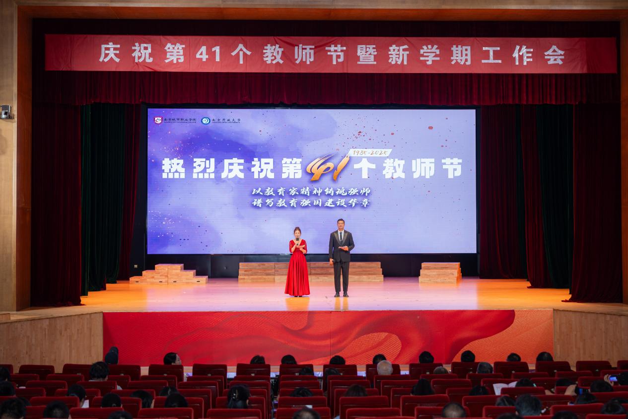 9月9日下午,我校召开第41个教师节庆祝大会暨新学期工作会议。全体校领导、中层干部、教职员工、离退休教职工代表、学生代表等参加大会。大会由校党委副书记史献平主持。